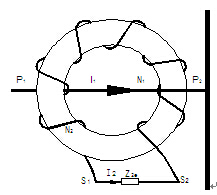 电流互感器的工作原理如图1所示,电流互感器的一次绕组串联在被测线路中,I1为线路电流即电流互感器的一次电流,N1为电流互感器的一次匝数,I2电流互感器二次电流(通常为5A、1A),N2为电流互感器的二次匝数,Z2e为二次回路设备及连接导线阻抗。当一次电流从电流互感器P1端流进,P2端出,在二次Z2e接通的情况下,由电磁感应原理,电流互感器二次绕组有电流I2从S1流过,经Z2e至S2,形成闭合回路。由此可得电流在理想状态下I1×N1=I2×N2,所以有I1/I2=N1/N2=K,K为电流互感器的变比。