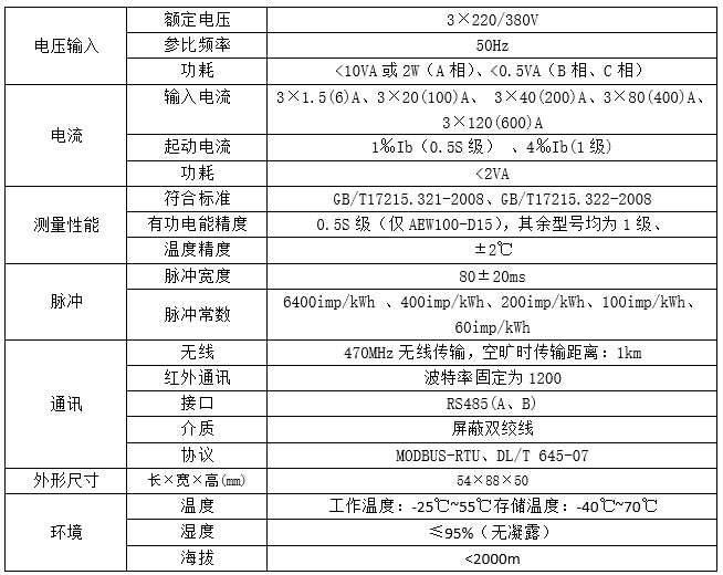 AEW100无线计量仪表主要用于计量低压网络的三相有功电能,具有RS485通讯和470MHz无线通讯功能,方便用户进行用电监测、集抄和管理。