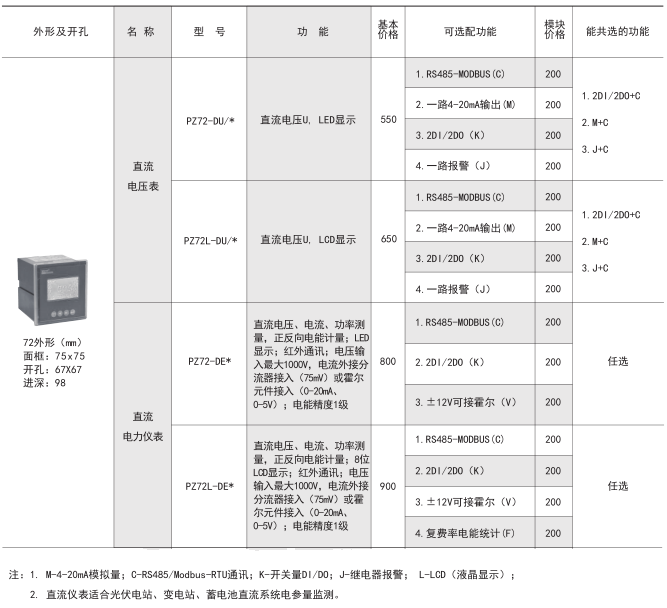 适用于直流屏、太阳能发电、电信基站等直流系统的电力参数检测。