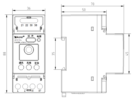 AEW110系列无线通讯转换器主要用于辅助RS485设备进行无线组网,通过将通讯数据在RS485信号与无线信号之间互转,完成普通RS485设备的无线通讯。