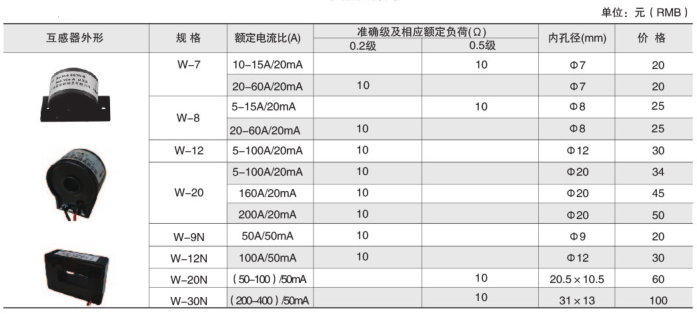 技术要求:输入电流:20-60A,二次输出信号20mA,准确级0.2级,额定负荷10Ω